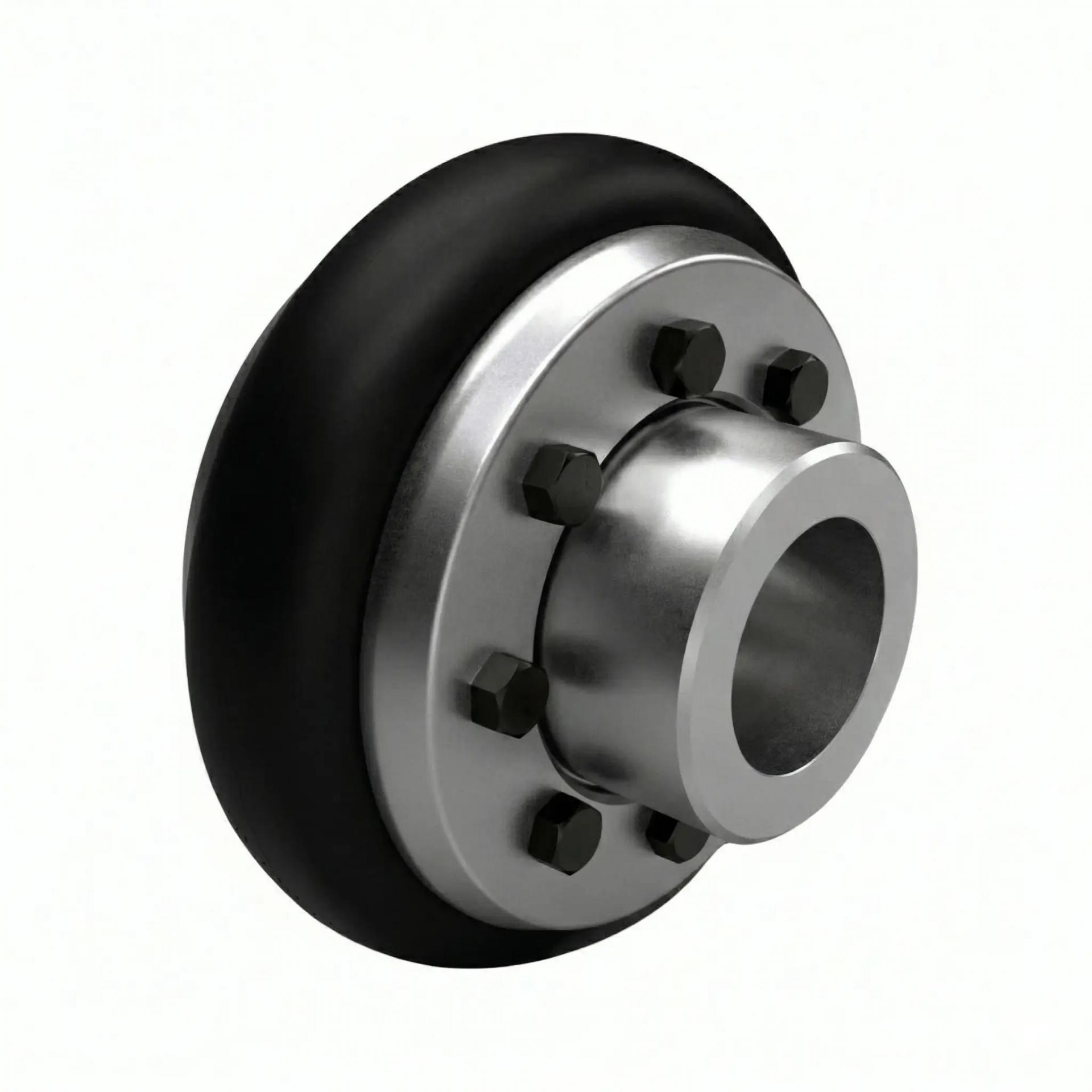 Casquillo no incluido. Acoplamiento altamente elástico diseñado para compensar grandes desalineaciones y absorber vibraciones extremas en transmisiones industriales. Su diseño de neumático reforzado permite sustituir el elemento flexible rápidamente sin necesidad de desplazar las máquinas acopladas. Versión exclusiva SGN M6.