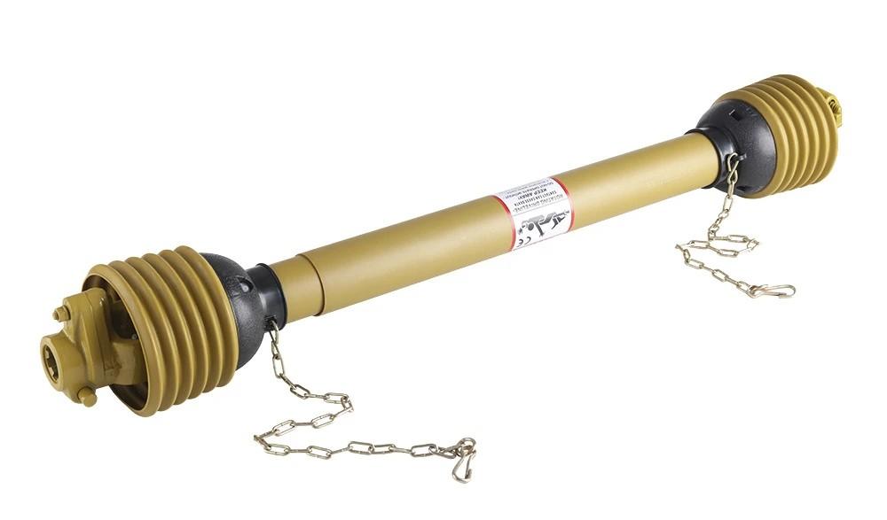 Eje de transmisión agrícola categoría T4 1200mm con sistema de protección por perno fusible. Diseñado específicamente para tractores compactos y medios que trabajan con maquinaria arrastrada o distanciada. Permite giros amplios con total seguridad y desconecta la transmisión al instante ante un bloqueo mecánico.